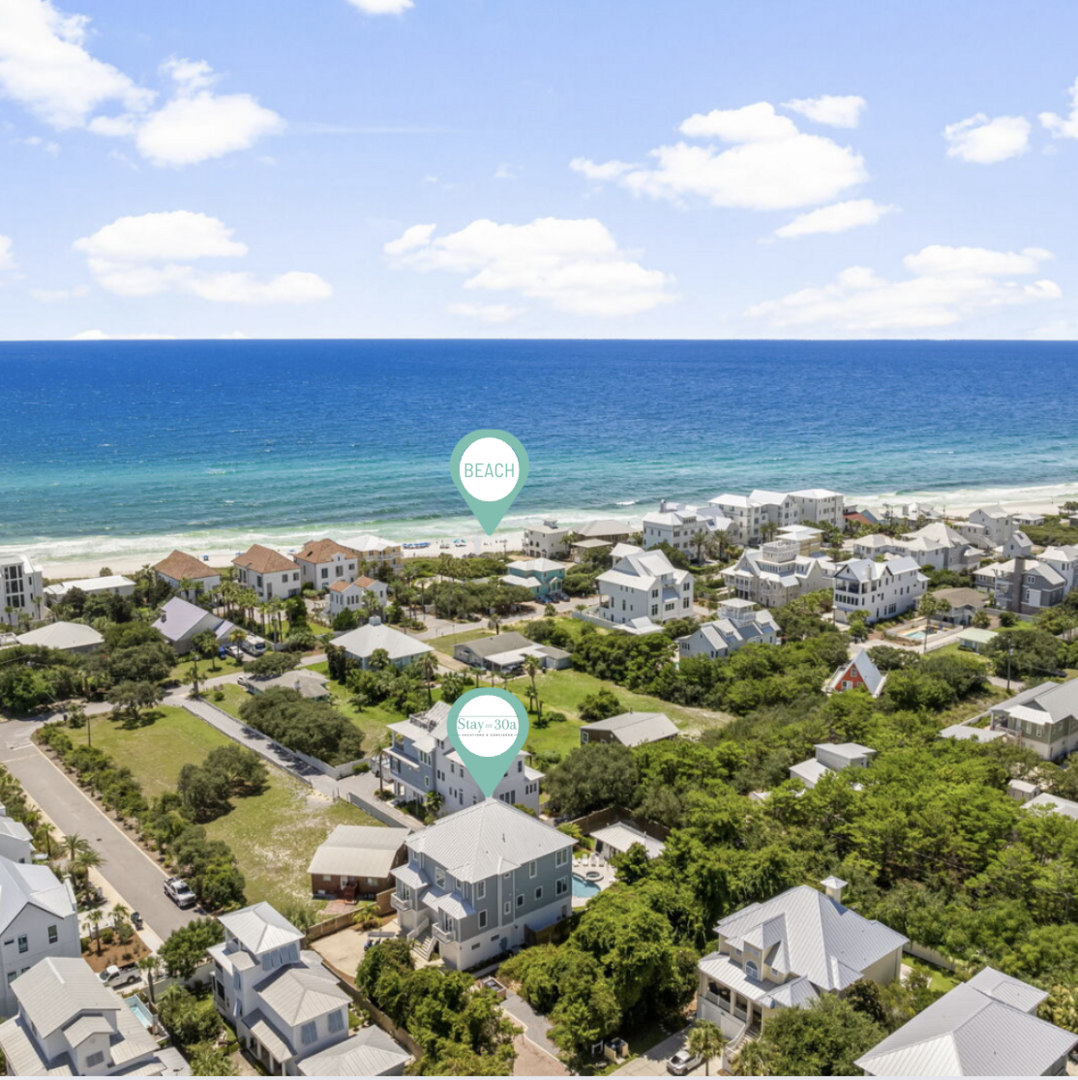 Located in the heart of Inlet Beach, Paradiso Del Mare puts you steps from beach access, minutes from award-winning restaurants and shops, and close to the best of 30A’s coastal charm. For added ease, the home includes a golf cart and ten adult bikes, making it simple to explore the area or enjoy sunset rides along the coast.