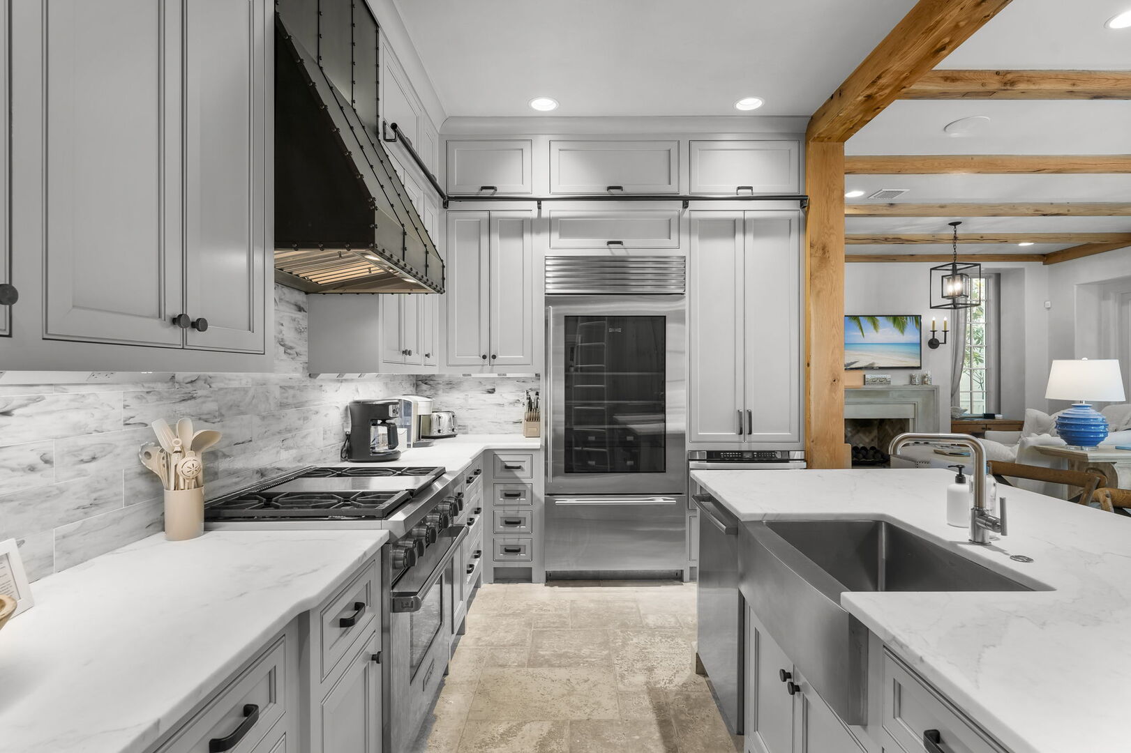 Fully stocked kitchen & large island. Perfect for preparing family meals!