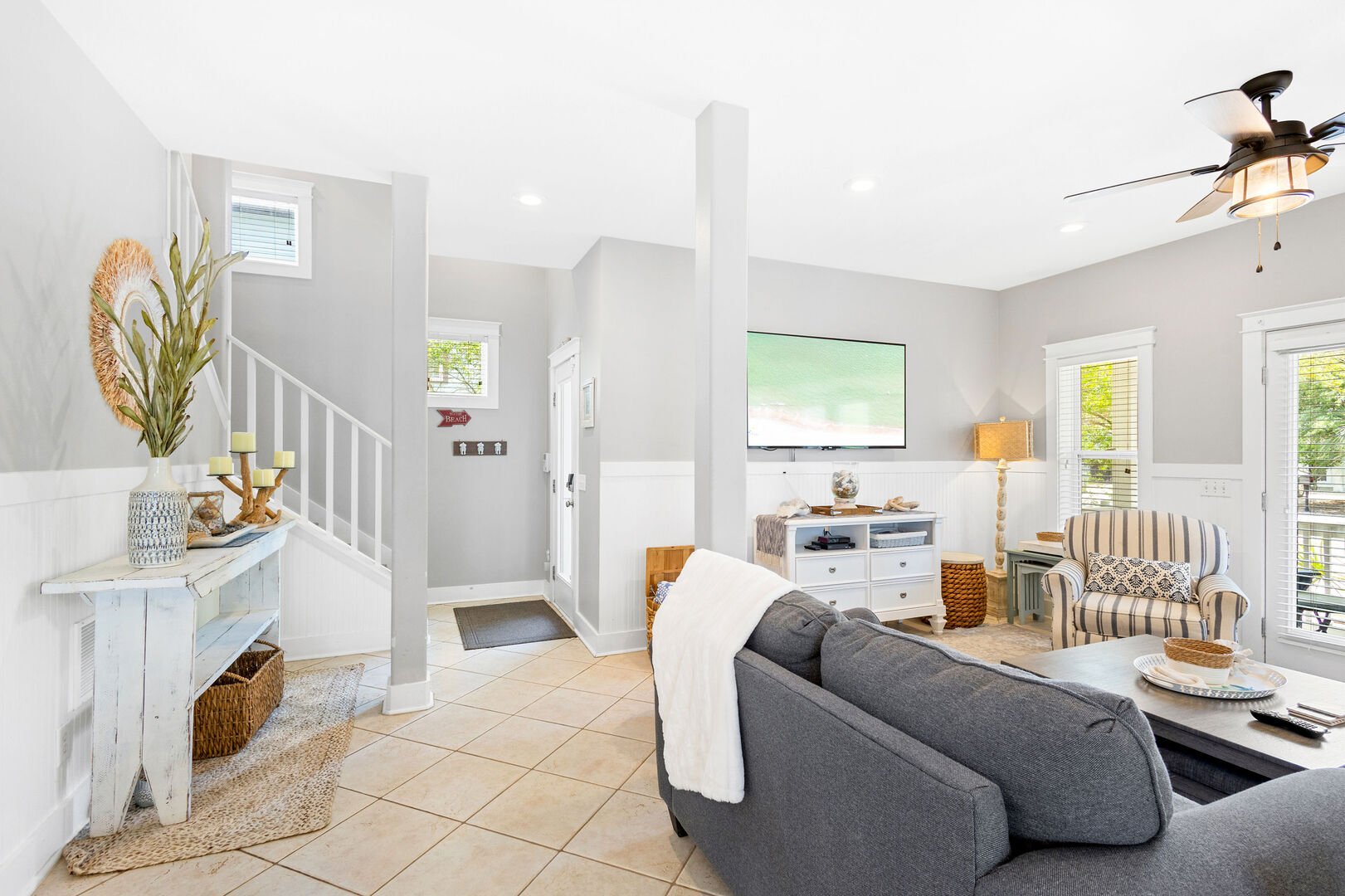 Third floor features seating and a smart tv perfect for entertainment and family game night.