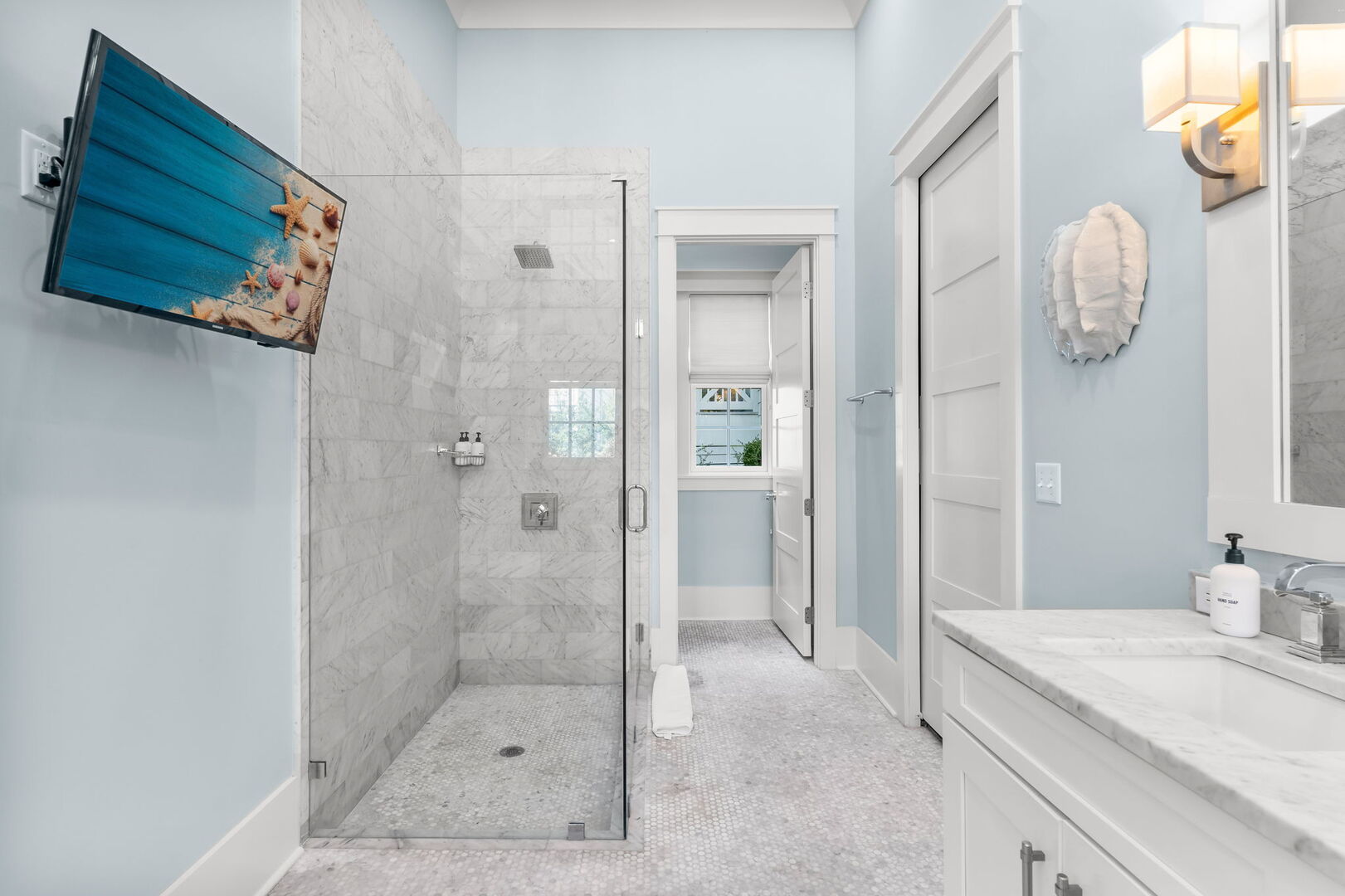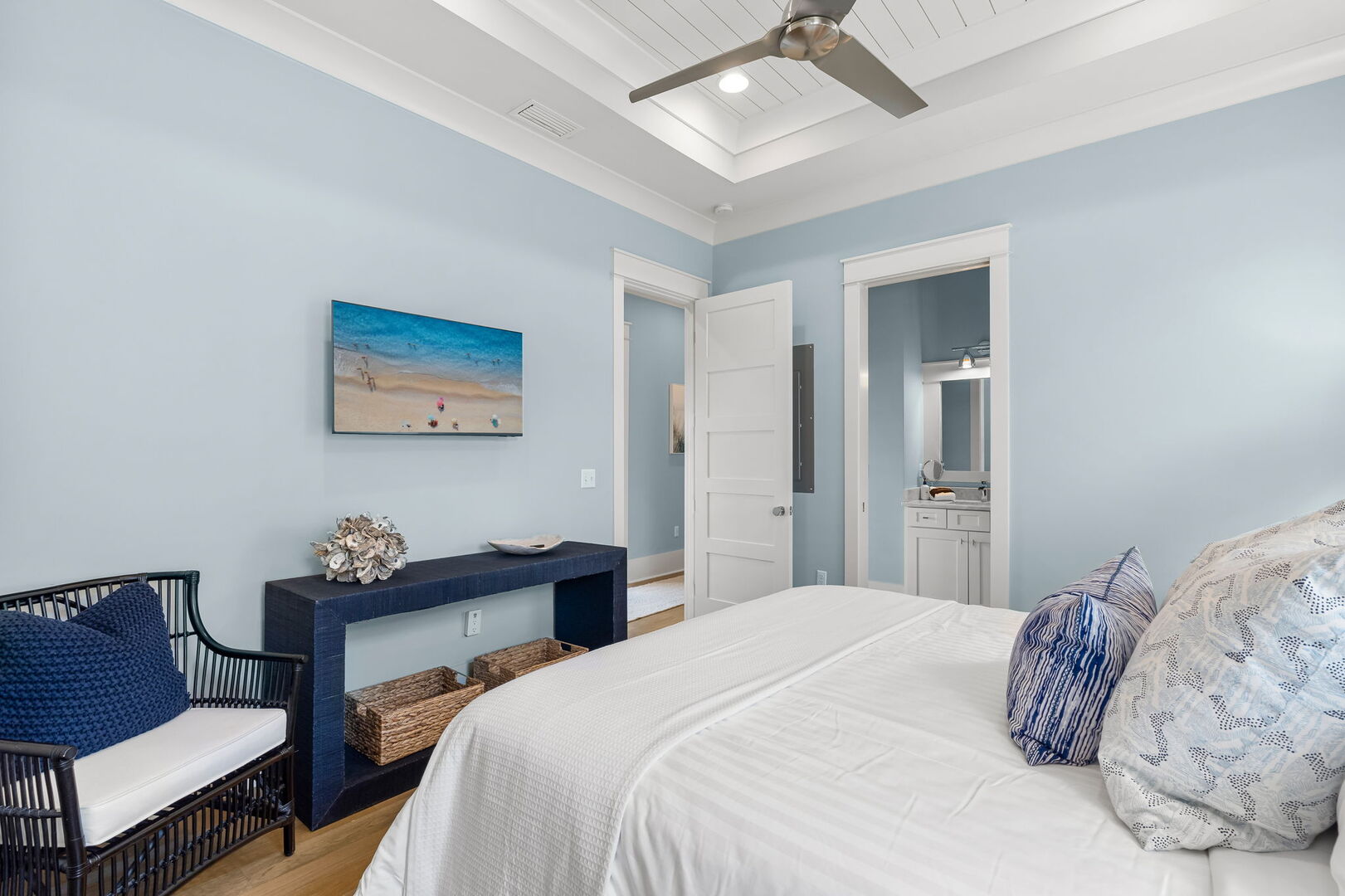 Bedroom #3 features king bed, with Jack 'n' Jill bathroom and smart tv.