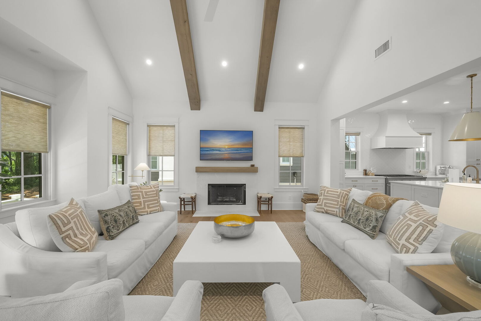 Elegance on Eastern Lake is a perfect blend of coastal charm and modern comfort. With over 3,800 square feet of living space, this newly constructed 2-story, 4-bedroom home sleeps 11 comfortably. Nestled under soaring pines overlooking the serene Tresca Lake, it is steps away from the white sandy beaches and emerald green water of 30A, where lifelong memories are made. In fact, there are two easy beach access less than a mile away. Tresca Lake is a beautiful peace-filled setting with lilypads and waterfowl, including ducks, egrets, and great blue herons. Guests will love the private pool overlooking Tresca Lake, along with the outdoor living area featuring a gas grill and TV for entertaining. With three nearby beach accesses less than a mile away and a paddle board launch across the street, this beach home is your perfect 30A escape!
