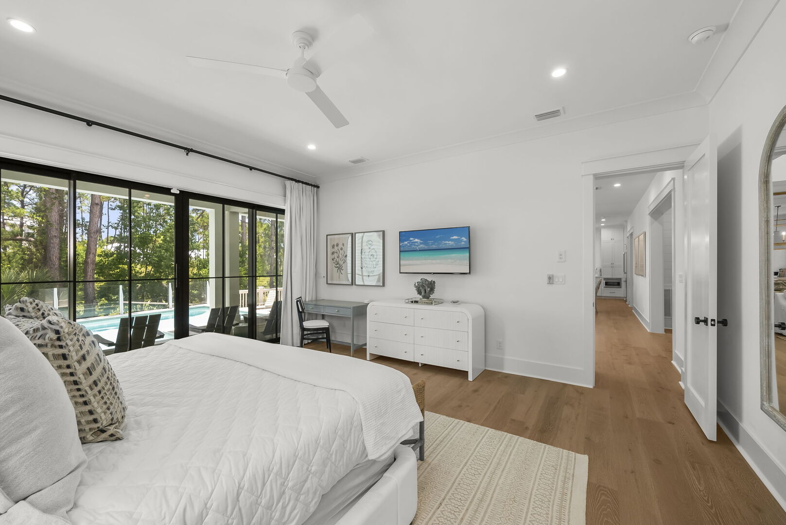 Bedroom #1 features a king bed, smart tv, ensuite and walkout to pool.