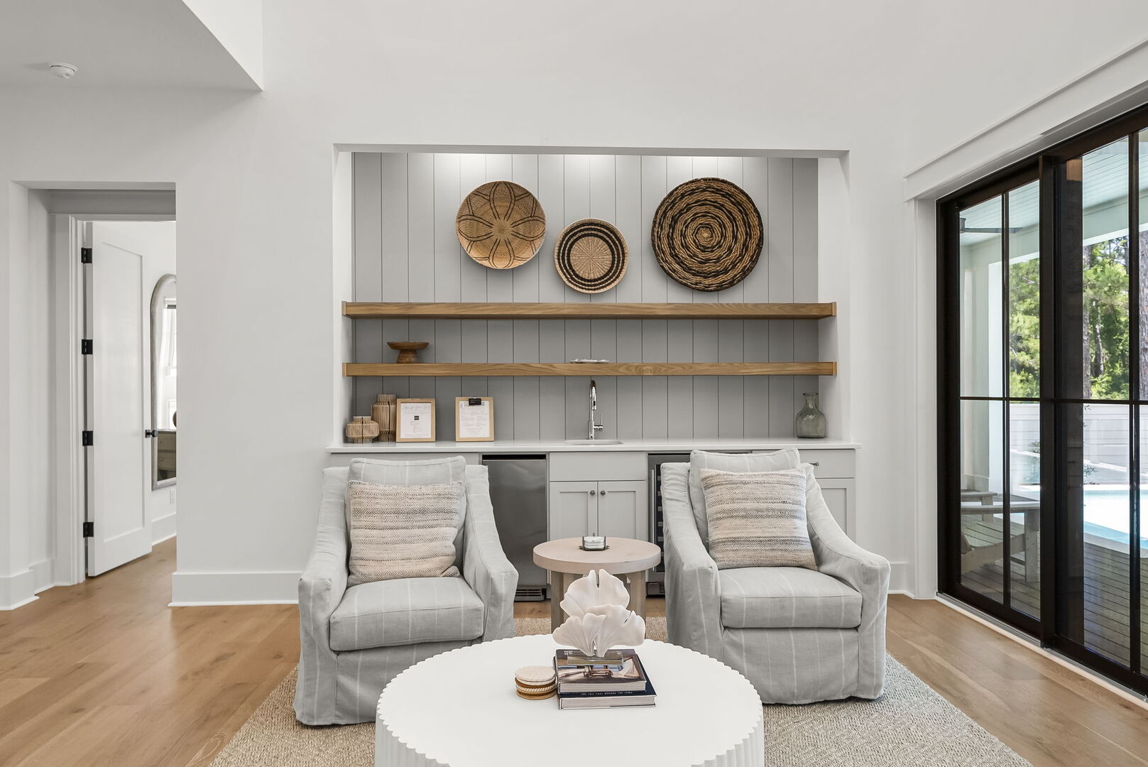 Den features a walkout to the private pool and a wet bar.