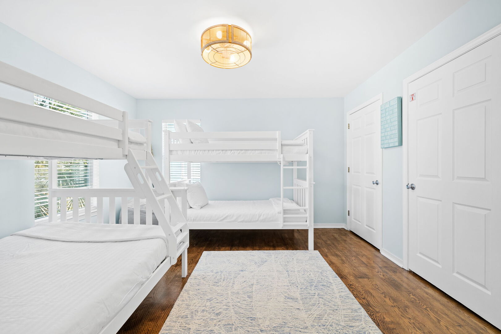 Bedroom #1 features (1) twin over full bunk and (1) twin over twin bunk.