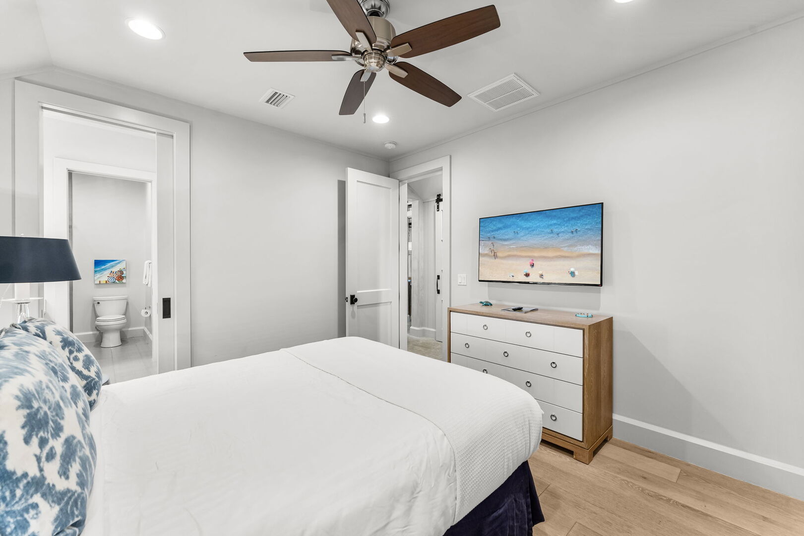 Bedroom #4 features a king with ensuite, walk-in closet, & smart tv.