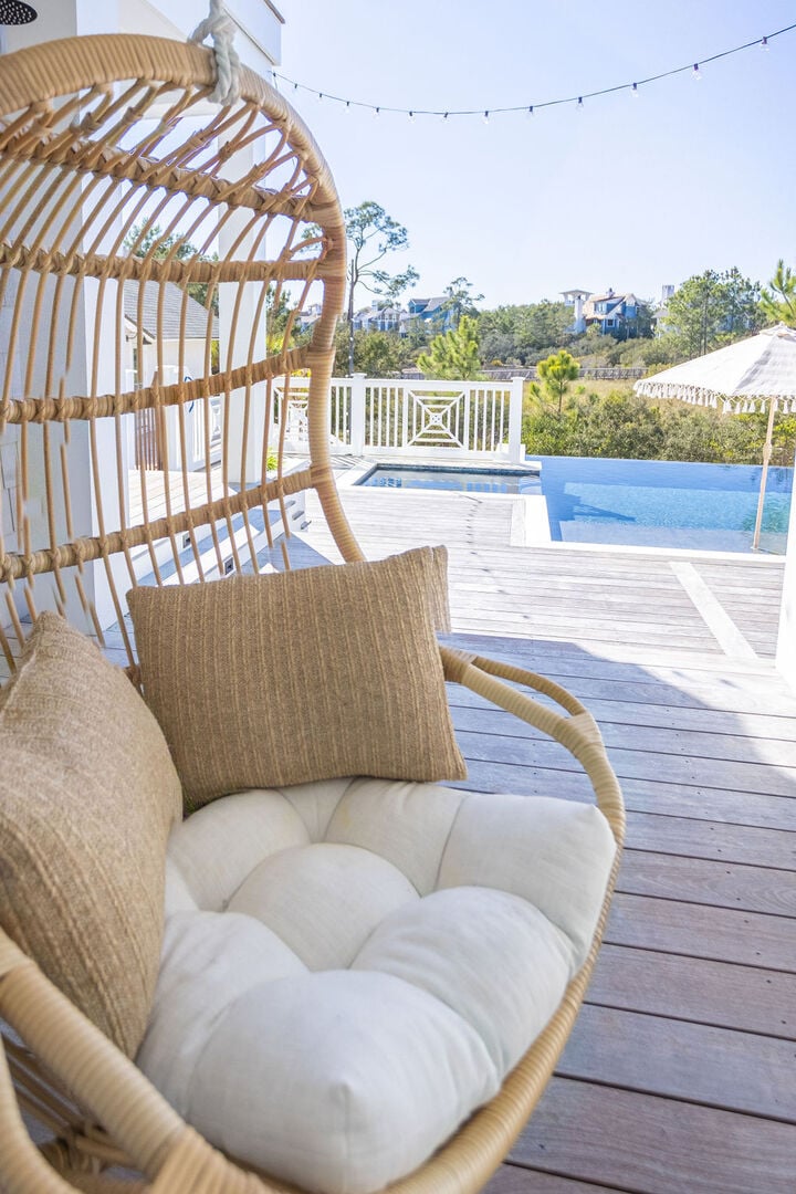 Just a short 6 minute walk along the boardwalk from the back of the home to the pool or private Watersound Beach Access!