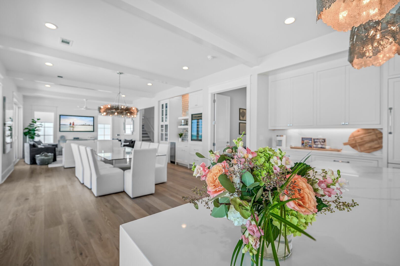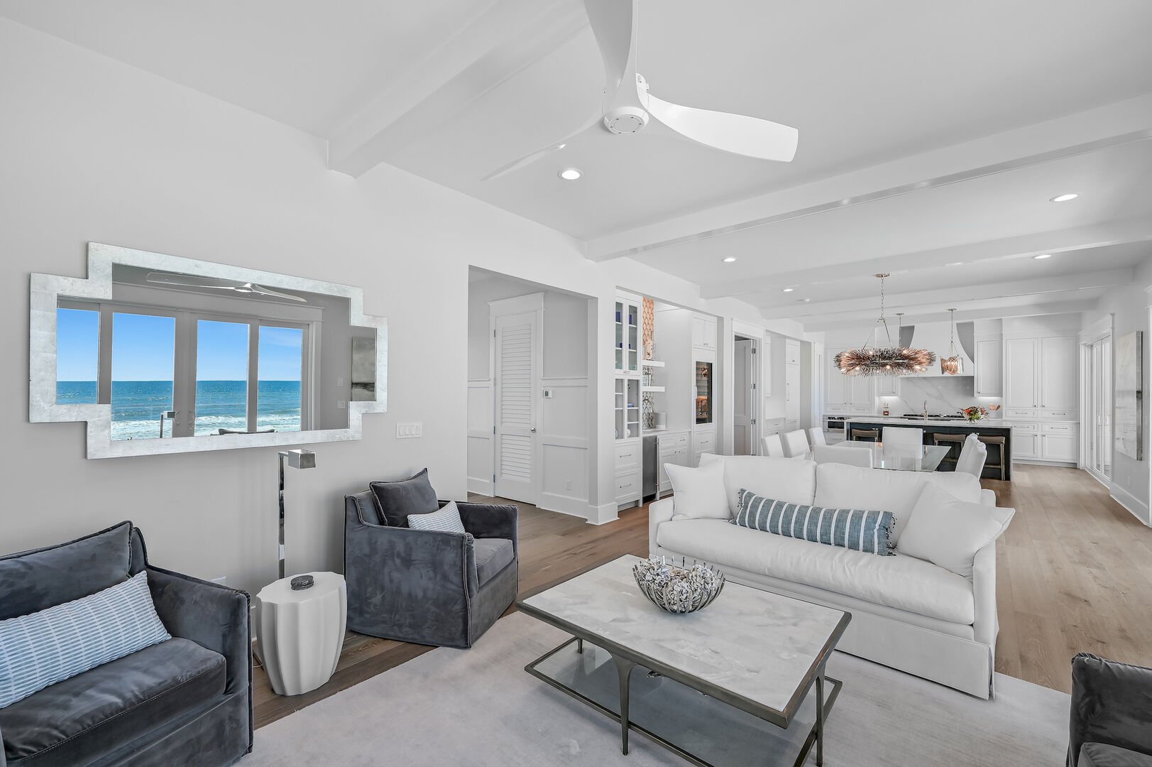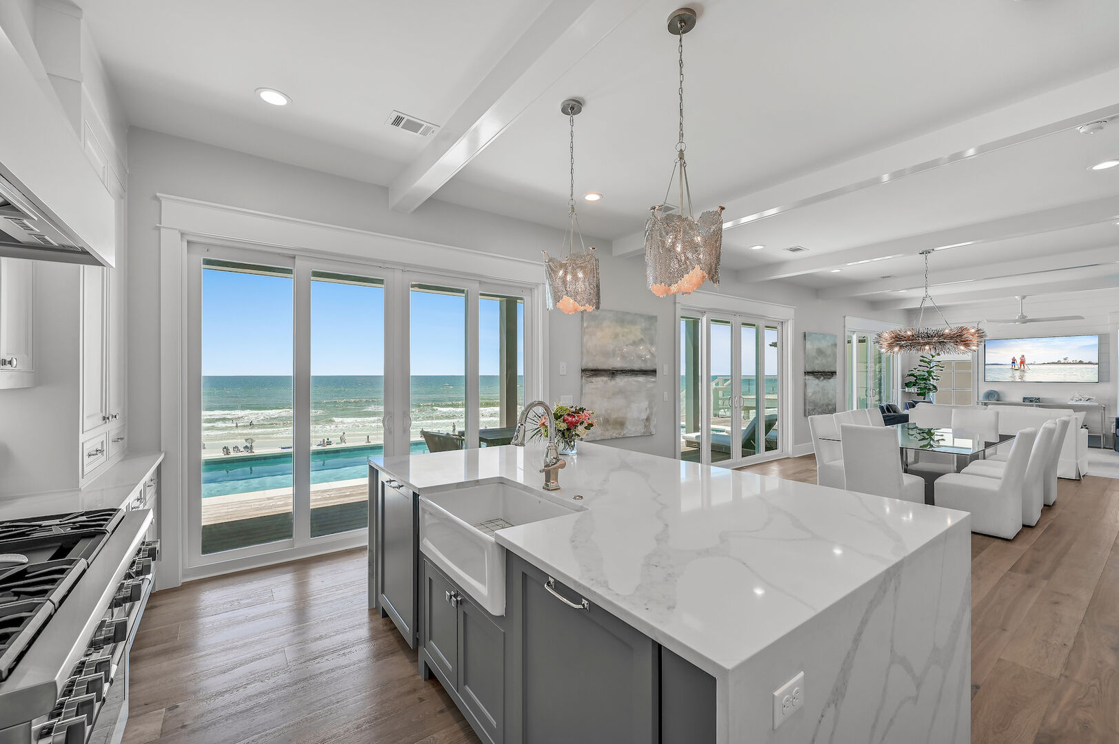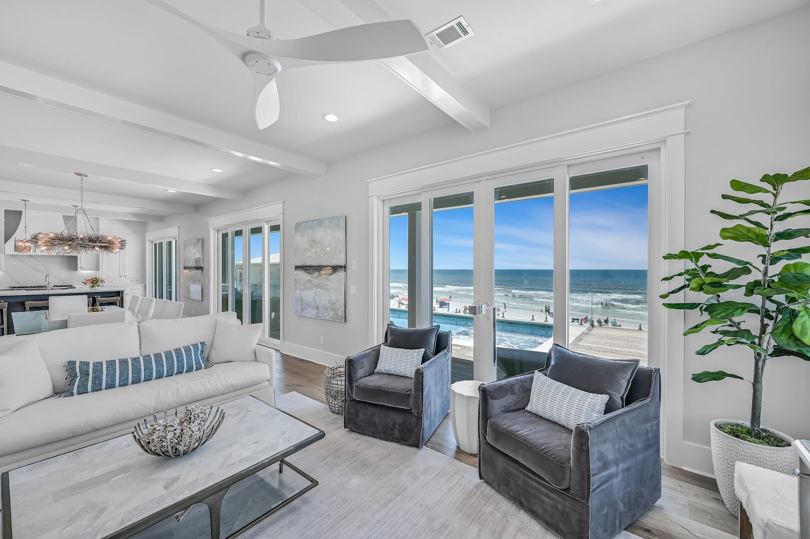 Luxurious open floor living space makes it easy to host large groups with panoramic views of the Gulf.