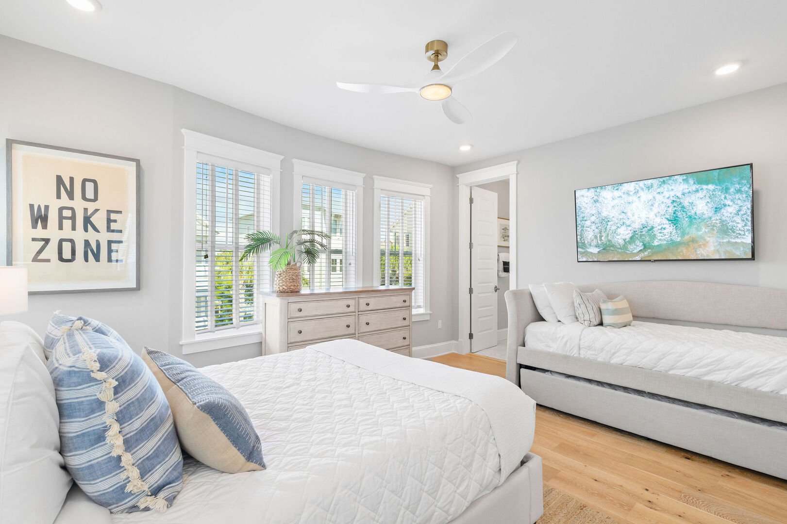 Bedroom #2 features a queen bed, a twin bed with a twin trundle, a smart tv and ensuite.